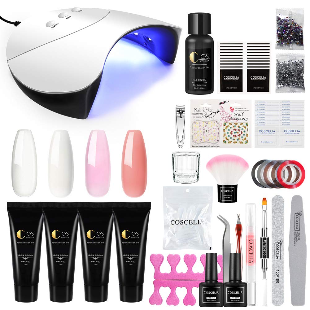 Amazon com COSCELIA Poly Extension Gel Nail Kit with 36W LED U V Nail 11
